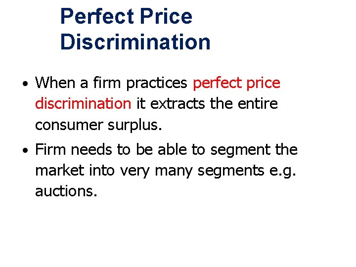 The demand curve is very elastic b. The demand curve becomes the marginal revenue curve. Perfect price discrimination also called pure price discrimination is an economy theory where a business is able to charge the maximum price that consumers are willing to pay for each of its products leaving no consumer surplus.